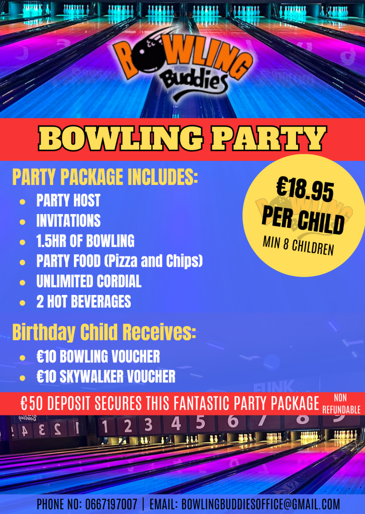 - Every Birthday child receives a €10 bowling voucher and €10 Skywalker voucher