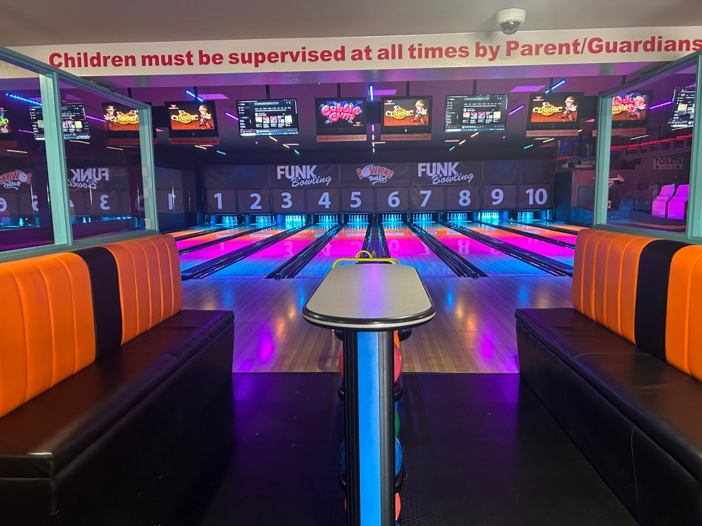 Our brand new lighting system will light the lanes up in a variety of vibrant colours! Everything is now black to let the lights pop.